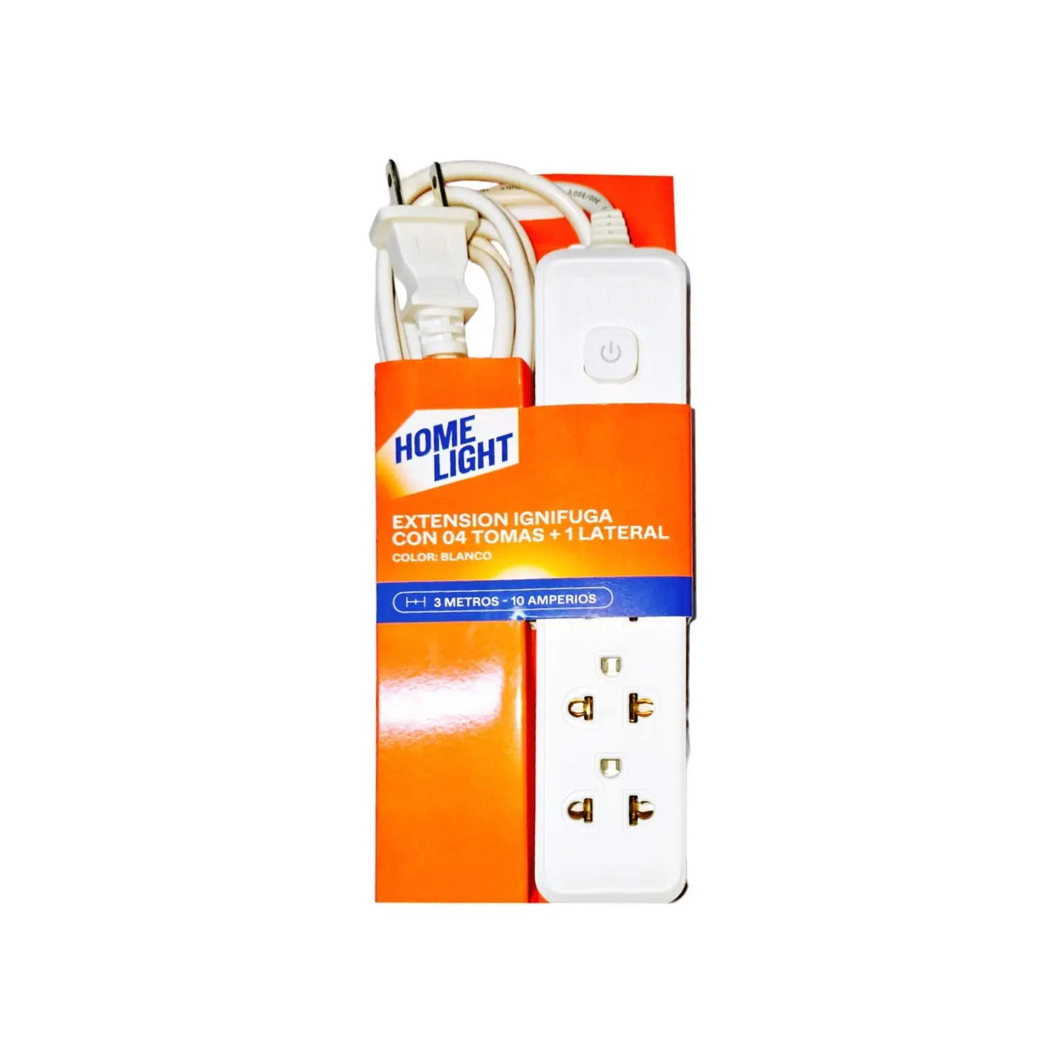 Extensión Autoextinguible 3 Metros con 4 Tomas + 1 Lateral Home Light