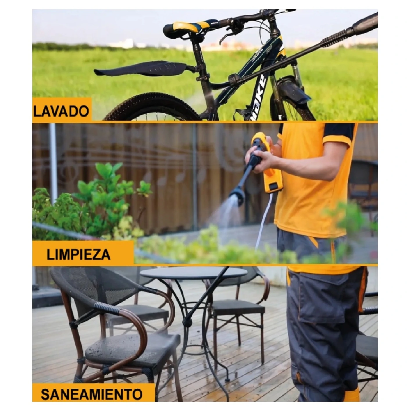 Diseño compacto, fácil de trasladar, hidro lavadora para auto, bicicletas, moto, jardín, césped, etc.