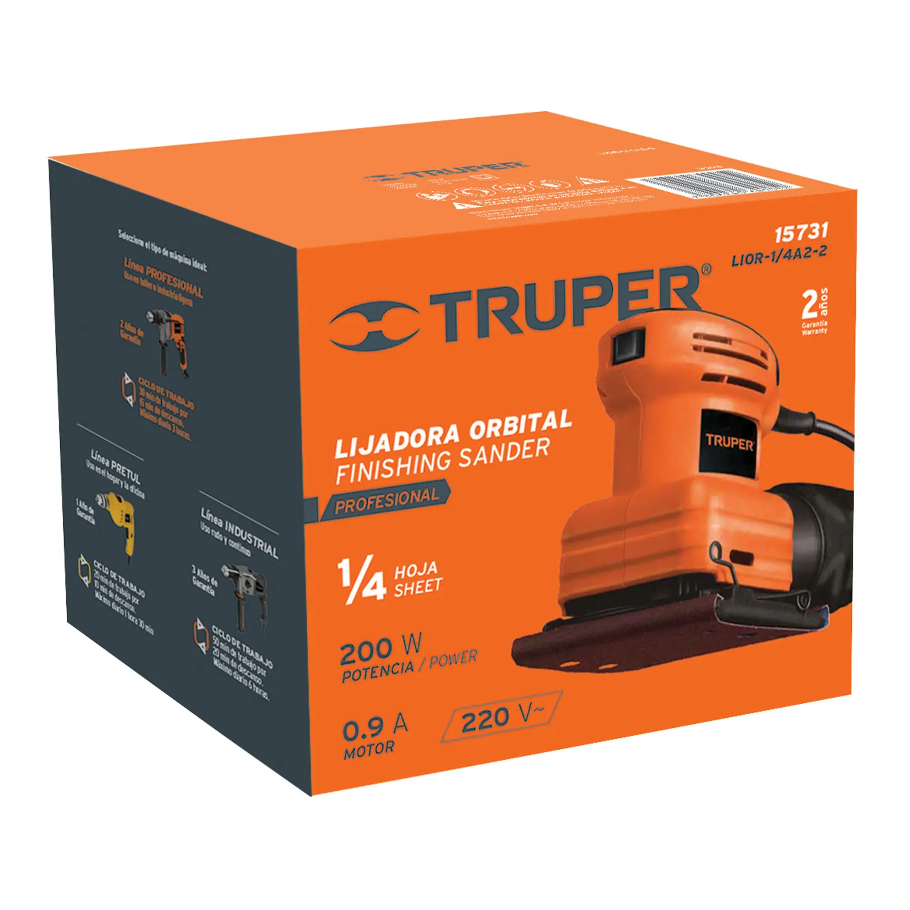 Lijadora orbital, 1/4 hoja, profesional, 220 V, 200 W