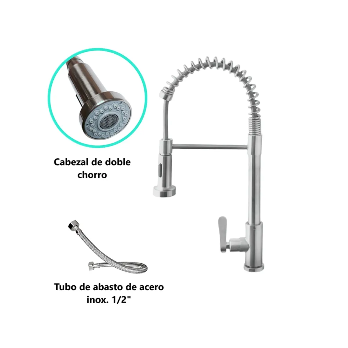 Llave Lavadero Flexible Pico Ganso al Mueble Acero Inoxidable VALMAX