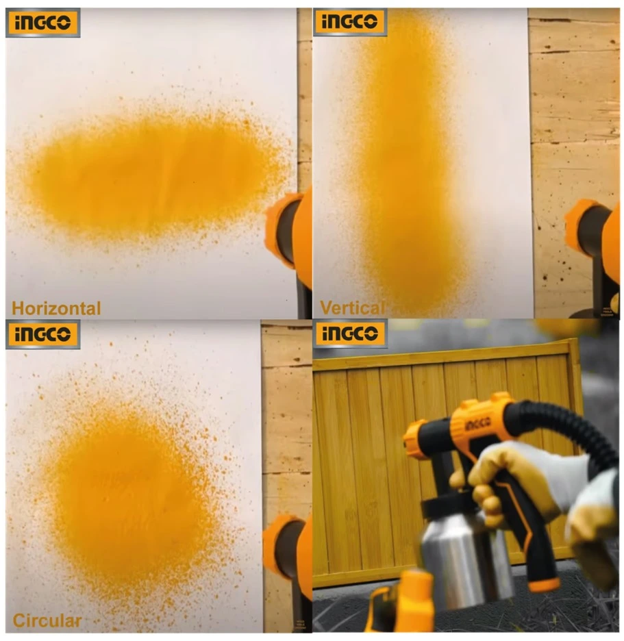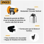 La pistola cuenta con 3 modos de pintar (punto, vertical y horizontal), cuenta con vaso de aluminio