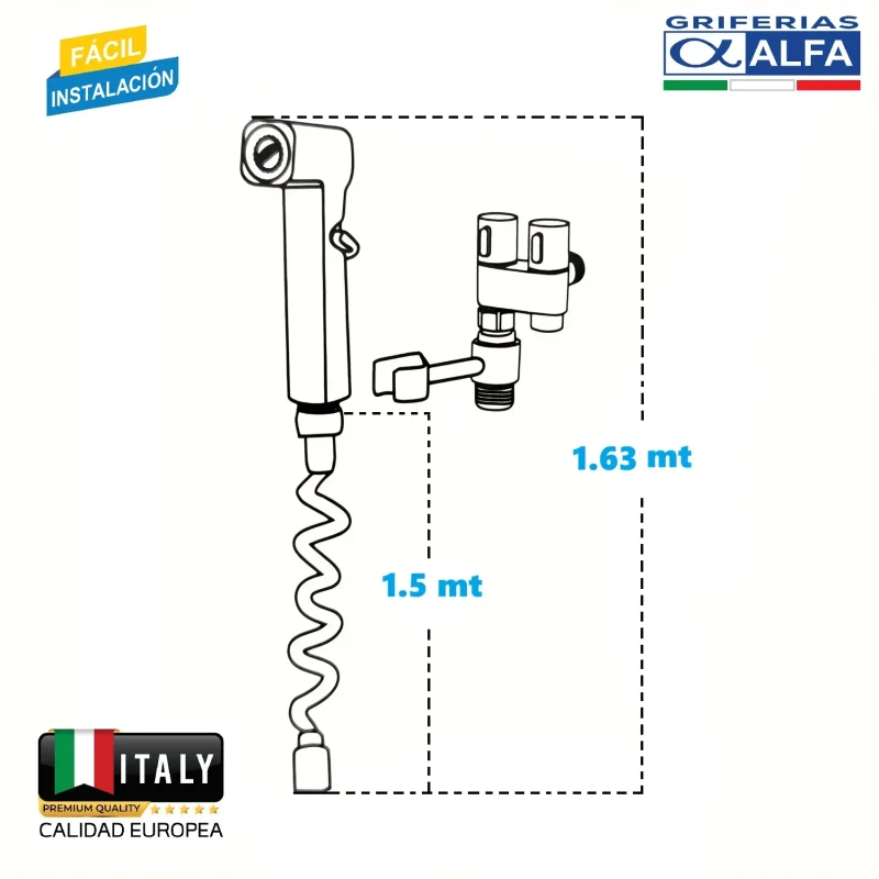 - Manguera Flexible: Manguera de 1.5 mts tipo resorte, garantiza mayor durabilidad y evita enredos.